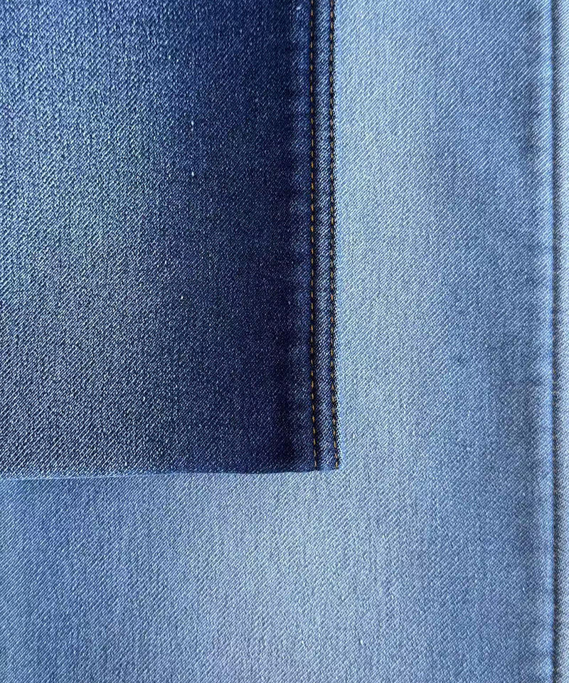 Color PFD, tejido falso, Composición: 83% algodón 14% poliéster 3% spandex, Peso: 315 g/m², Súper elástico, Denim.